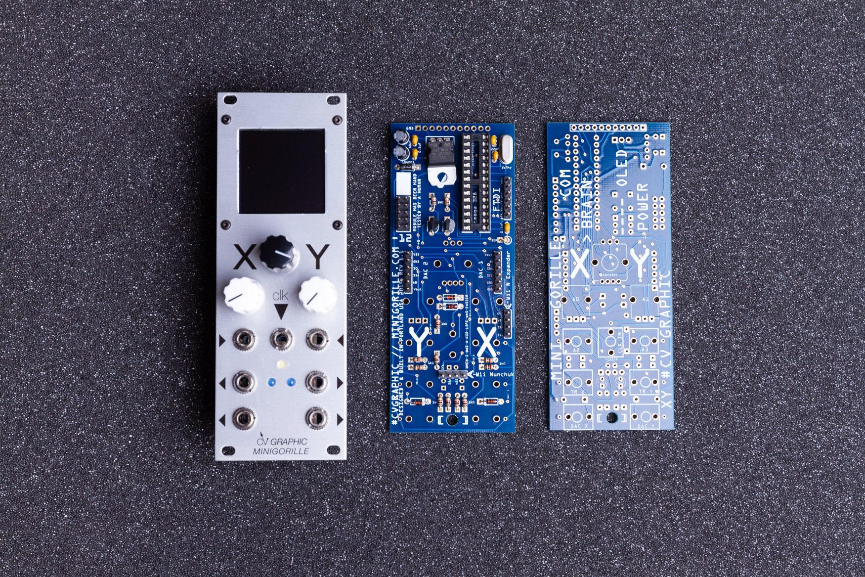 CvGraphic is a module built around an OLED screen that bring interaction between graphic and controlled voltage synthesis.